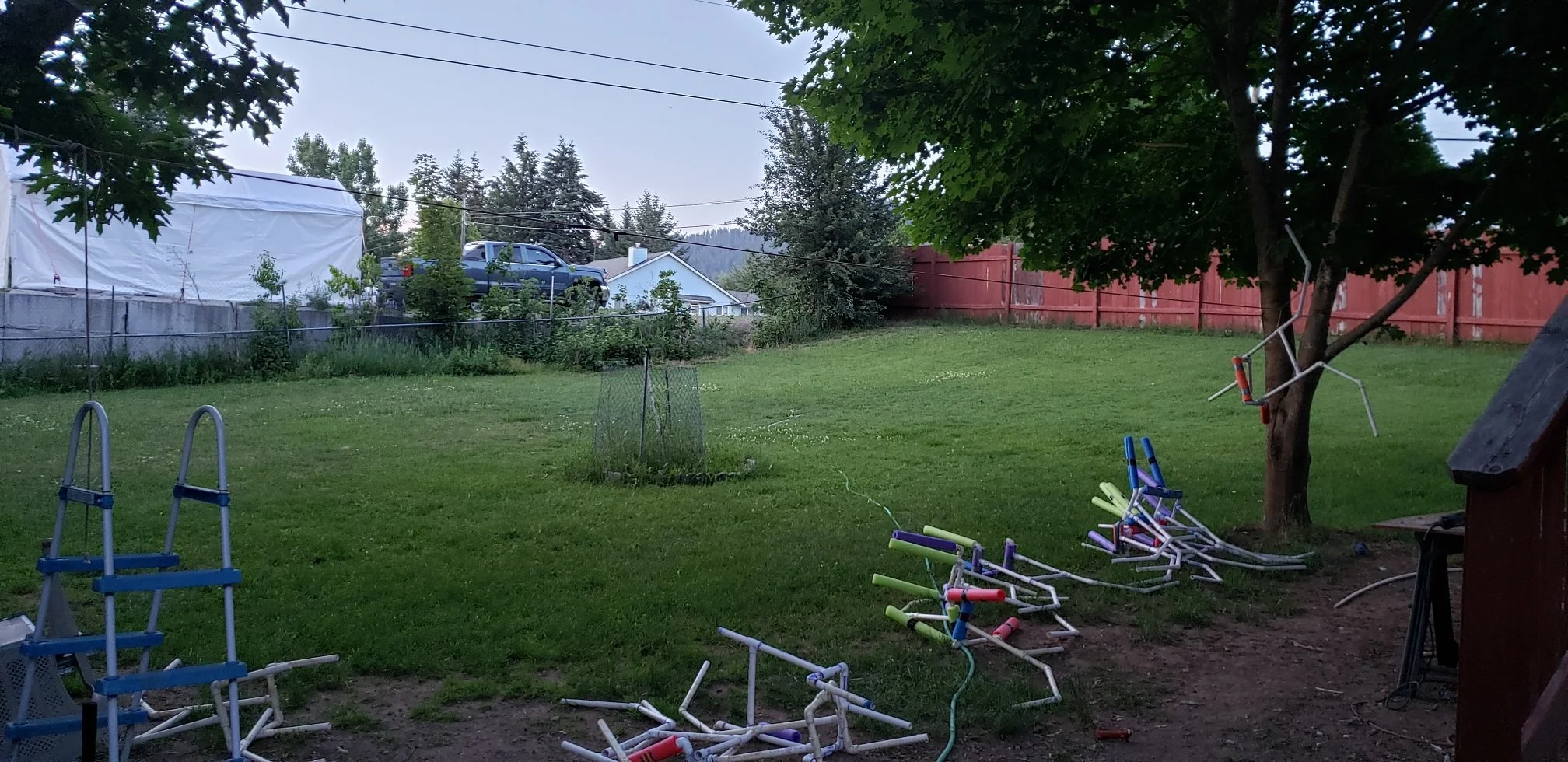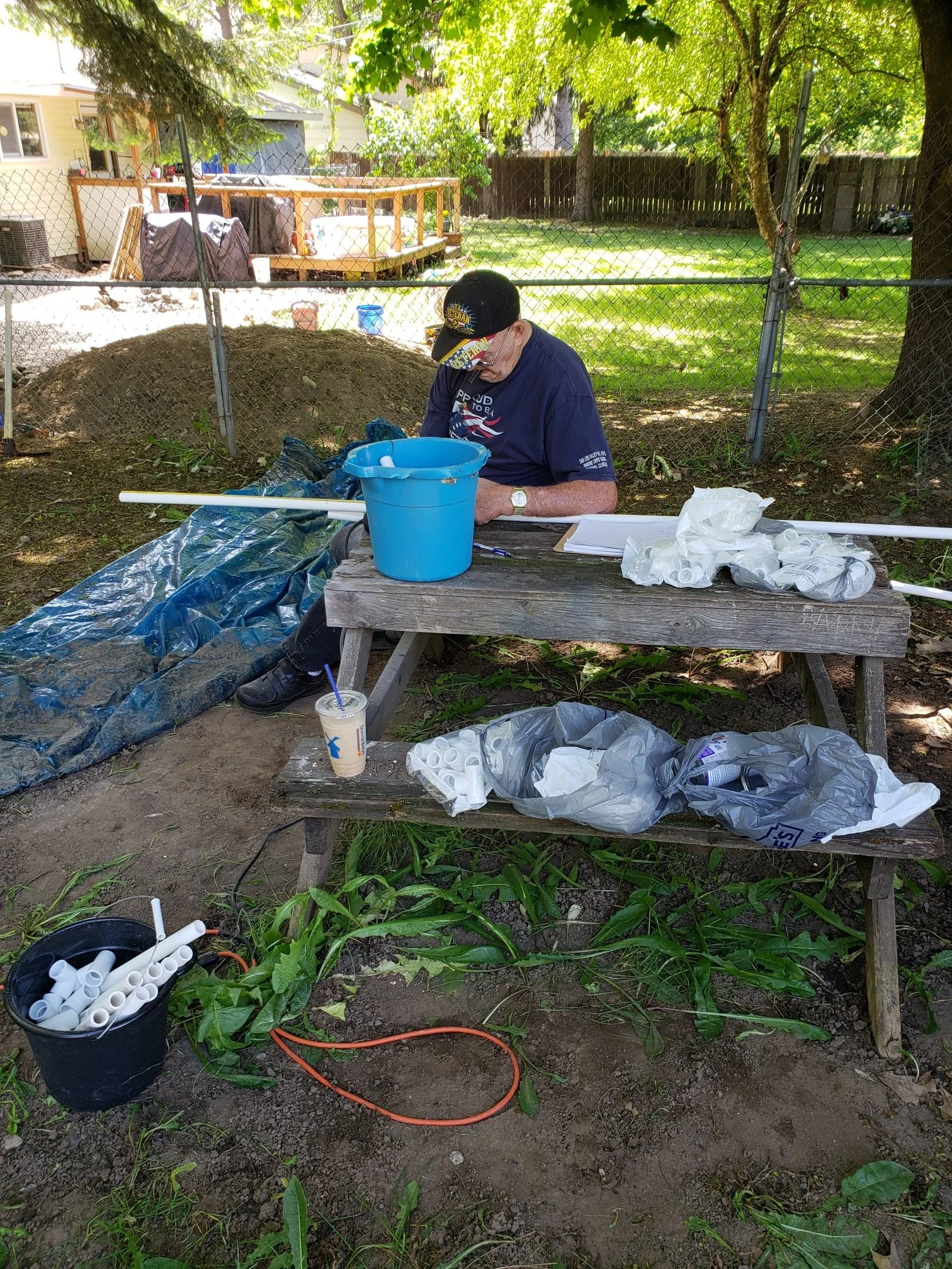 My dad, Bob Kernen took on the job of building all of the Angel wings and turning our backyard into an Angel wing building center.